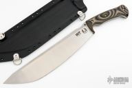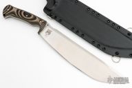 This Nomad Camp 12 by Work Tuff Gear features a satin finished Bohler K340 Steel blade with a saber grind that has a convex cutting edge, .250" blade stock and 2.488" blade depth, full tang construction with black/tan/green G-10 scales. Comes with a nicely fitted kydex sheath and zippered case. New from maker at the 2023 Blade Show. First Production Run Dated 06/2023