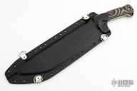 Nomad Design The Nomad was sketched out after a 2 week-long camping trip to the Sequoia National Forest back in 2012. The idea behind it is both wonderfully complicated and brilliantly simple at the same time. I wanted a knife that did what a Bowie is supposed to do historically. Chop like a hatchet, stab like a dagger and cut like a kitchen knife. So in many ways, the Nomad is just that, a big, wonderful “jack of all trades” knife that in my opinion does not suffer from some of the weaknesses associated with the traditional Bowie shape knife designs ie the more delicate tip, sometimes odd ergos and a guard to get in the way of finer jobs. So the tip was replaced with a traditional Tanto style, the guard becomes an integrated choil/guard for saving your hands in a hard stab and effectively reducing both the size of the usable blade and giving more control for finer detail work. Finally the handle, after years of working with Dark Timber Knives behind the scenes, all that ergonomic work we did on the Hooligan and Kodiak show up in this multiple position handle. Add to this package a forward cant with a long wide blade and you have a very capable large knife that looks like nothing else on the market.