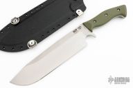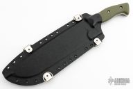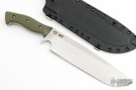 This Grizzly by Work Tuff Gear features a stonewash finished K329 Steel blade with a saber grind that has a convex cutting edge, .230" blade stock and 2.303" blade depth, full tang construction with green G-10 scales. Coems with a nicely fitted kydex sheath and zippered case. New from maker at the 2023 Blade Show. First Production Run Dated 05-2023