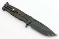 We believe we’ve come up with the best folding companion to the classic Marine Utility knife on the planet.  The knife is a perfect companion piece to the fixed “Fighter” and we call it the, “The Fighter Flipper.”.  This a big manly knife that’s as comfortable working, as it is cruising around town in your pocket.  There is so much going on with this knife its hard to take in: from the retro milling on the handles, drop-point blade, integral pommel to the bearing pressed into the one-of-a-kind pocket clip.  There truly is NOTHING like the Fighter Flipper™ in the knife world.  You will want to chop, stab and smash something with this beast in your hand so proceed with caution… Comes with original box and hard case.  Excellent Condition.