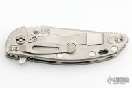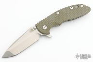 This XM-18 Spanto by Rick Hinderer Knives features a 3.5" stonewash finished blade, notched thumbrest and dual thumbstuds. The handle has a green G-10 scale, and stonewashed titanium handle/clip. Clip can be mounted for tip up or down carry. Tri-way pivot system.  Nice lockup, and detent. Includes the original box, and extra hardware. Excellent condition.