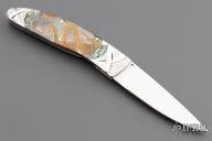A native of Japan, Koji Hara was born in 1949 in Imari City, and is one of the most traveled of Japanese knifemakers, attending shows throughout his home country as well as over the United States and Europe. When he began making his first knives in 1988, they were his versions of Bob Loveless designs. Three years later he held a one-man knife show in Seki City, Japan, heart of the production cutlery industry. It was at this point in his career that he realized he had to make and sell knives of his own concept and design if he was going to succeed. In 1994 Koji had become a Probationary Member of the American Knifemakers Guild, and in 1997 a Voting Member. During this period he was participating in at least five American shows per year, and would soon be attending shows in Europe. Annually, this prolific maker attends two knife shows in Japan, in addition to having maybe two one-man shows, usually in smaller communities, where collectors don't visit the larger cities. He feels these small shows enable more and more people to become familiar with custom knives. He has received awards for his folders such as "Best in Show" and "Most Innovative" in several international knife shows. Koji primarily uses a powdered stainless steel known as Cowry-Y, made by Daido Steel in Japan, for his blades. It holds an excellent cutting edge and polishes to a high mirror finish. Although one of the drawbacks of powdered steel is its weakness towards lateral impact, this can be corrected through proper heat-treating. Koji also makes knives featuring ATS-34, D-2, 440C and other steel blades, based on customer preference. His preferred method of making blades is via stock removal. A folder specialist, he often carves the handle material into a terraced landscape to feature his classic "Air-Step" design.