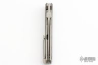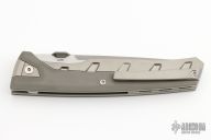 This Matador by Suprlativ Knives features a satin finished m390 blade with a thumb disc. The handle features bead blasted titanium frame with a matching floating backspacer and tip up pocket clip. Includes the original box. New from Maker!