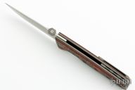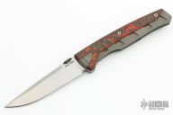 This Matador by Suprlativ Knives features a satin finished m390 blade with a thumb disc.  The handle features bead blasted titanium frame with Mars Valley Fat Carbon inlays.  Titanium tip up pocket with a floating backspacer.  Includes the original box.  New from Maker!