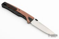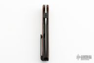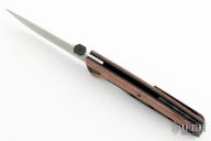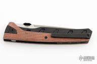 This Matador by Suprlativ Knives features a satin finished m390 blade with a thumb disc.  The handle features a black PVD titanium frame with Orange Micarta inlays.  Titanium tip up pocket with a floating backspacer.  Includes the original box.  New from Maker!