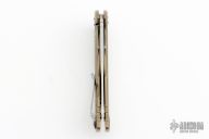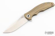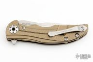 This 0609 RJ Martin flipper by Zero Tolerance features a satin finished blade with stonewashed flats, notched thumbrest and flipper. The handle has a milled and anodized titanium frame with a tip up reversible stainless steel clip. Rides on bearings, nice detent, lockup and blade seating. S/N 5951. Excellent condition. Comes with original box and papers.