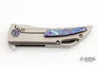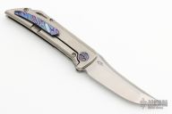 WingMan EDC is proud to introduce the second knife in our continued pursuit to offer an incredible selection of iconic collaborations. The YUREI is unmistakable design by custom knifemaker David Santiago. An all titanium framelock folder with stonewash finish, darkti inlay, pivot and tip up clip with hidden screws. The blade is M390 steel in a tanto edge and gorgeous belt satin finish. The blade utilizes iconic Lee Williams features Lee Williams’ patented Kickstop mechanism. Comes with original box, zippered case, dog tag, pivot tool and papers. Excellent condition.