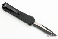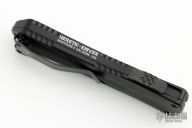 This Manticore-E by Heretic Knives features a two-tone recurve blade with notched thumbrest. The handle has a black aluminum frame, stainless steel hardware and tip down clip. Comes with original box, lube, and drawstring pouch. S/N 02046. Has some light scuffs on the clip, excellent condition otherwise.