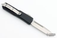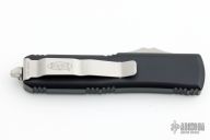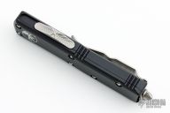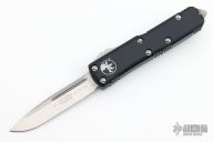 This UTX-85 by Microtech features a satin finished. The handle has a black aluminum frame with blasted hardware and tip down clip. Comes with original box and papers. Dated 07/2020 and S/N 55860.  Includes the original box. Has a couple light scuffs, otherwise Excellent Condition.