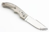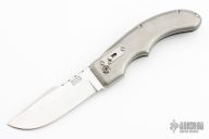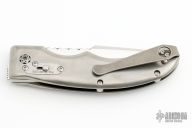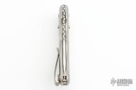 This Cholla by BladesIIB Knives was named after a "Jumping Cactus" in Arizona. The blade with satin finished grinds and mirror polished flats, fileworked thumbrest and notched front flipper. The handle has a bead blasted titanium frame, tip up titanium clip. The locking mechanism is the Triple "B"S, or Bud Beets Ball Slide - BladesIIB Pat. 10,981,283. Comes with original box and papers. New from maker at the 2023 Blade Show.