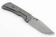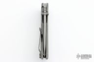 This MAC2 features a stonewashed drop point Magnacut blade with dual thumbstuds and a notched thumbrest.  The handle features a stonewashed atomic FRAG titanium frame with a matching tip up pocket clip. Includes the original box and COA. New Condition.