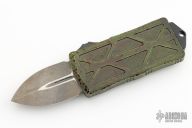 This Microtech Exocet features a stonewash/distressed finish spear point blade. The handle has aluminum frame and a black clip that doubles as a money clip dated 01/2023 s/n 694. Excellent Condition.