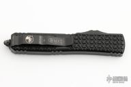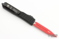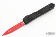 This Ultratech OTF automatic by Microtech features a D/E red blade. Black aluminum contoured frame with black tip down stainless steel clip. Dated 06/2022 and s/n 7385. Includes original box and papers. Excellent condition.
