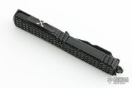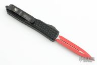This Ultratech OTF automatic by Microtech features a D/E red blade. Black aluminum contoured frame with black tip down stainless steel clip. Dated 04/2022 and s/n 6995.  Includes original box and papers.  Excellent condition.