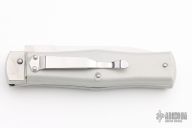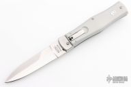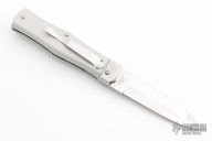 This Leverlock Auto by Mikov Knives features a polished spear point blade with false top edge. The handle is comprised of steel bolsters, lever and pins with silver scales over steel liners and backspacer. Strong leaf spring action. Excellent condition.