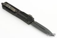 The Microtech Scarab II is a high quality tactical out-the-front knife, based on the original Microtech Ultratech design. Built to withstand the extreme, the Scarab II excels in high-intensity covert operations. The Scarab II is designed for a broad spectrum of utility and close quarter combat applications for use by qualified law enforcement, military, and government agency operatives. The Scarab II is fabricated to the highest possible standards to assure reliability and safety with its use. Featuring a one-handed, open and close, dual-action out-the-front (OTF) design, and double edge blade. The Scarab is produced with a large easy-to-grip handle that contains non-slip grip inlays on both sides. Comes with original box and papers. Excellent condition.