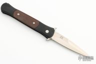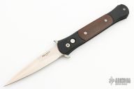This Don by Pro-Tech features a satin finished blade with false top edge. The handle has a black aluminum frame with cocobolo inlays. Comes with a Pro-Tech box and papers. PR2 s/n 630. Excellent condition.