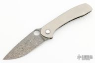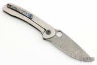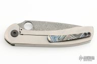 This Sabre Integral by Maverick Concepts features a Damasteel blade with thumbhole. The handle has a stonewashed integral titanium frame with 4-Alloy Dark Ti clip, Mother of pearl inlaid pivot screw. Comes with a COA dated 10/21/21. Excellent condition.