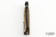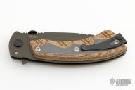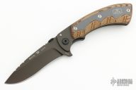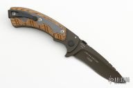 This Open Season Whitetail Skinner by Buck Knives features a black blade with thumbdisc, flipper and notched thumbrest. The handle has brown canvas micarta scales with an aluminum frame, stainless steel liner and tip up clip. Comes with original box and papers. Excellent/new condition. #178/250