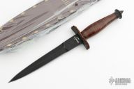 An important piece of equipment of the Devil's Brigade was the specially designed V-42 combat knife, which was also part of the intensive close combat training. The handle of compressed leather discs ends in a pointed impact cap. A thick leather padding underneath the slightly curved pommel offered protection from injury. The double-edged blade of the dagger features a corrugated thumb rest for a secure grip. To this day, the crest of the Special Forces of the U.S. Army adorns this legendary dagger. We not only deliver this exclusive collector's item with its classic leather sheath, but also with a replica of the cloth insignia of the unit, which is the red spearhead, and with a reproduction of the original German sticker with the words "The worst is yet to come!", which was stuck behind enemy lines in order to demoralize the enemy. A premium collector's ensemble, especially ideal for aficionados of military history!