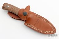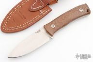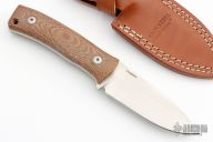 This M4 by Lion Steel features a satin finished drop point blade with .162" blade stock and 1.283" blade depth. The handle is comprised of a machined natural canvas micarta scales with full tang construction. Lanyard hole. Includes a brown leather sheath with belt loop, original box and paperwork. Excellent condition.
