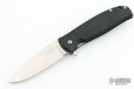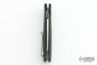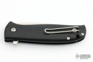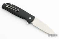 This Skaha II By North Arm Knives features a milled drop point blade with notched thumbrest and flipper. The handle has black G-10 scales with an inlaid stainless steel liner and tip up clip. Rides on bearings, nice detent, lockup and blade seating. Excellent condition.