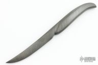This knife by David Broadwell is made from a solid piece of Damascus, approximately .160" blade stock and .585" blade depth, integral construction. The handle is approximately .500" thick. Excellent condition.