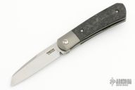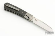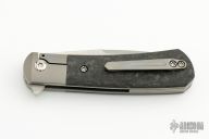This Apache Front Flipper was designed by Enrique Pena, manufactured by Reate Knives and features Lee Williams Kickstop.  This knife features a satin finished blade with notched thumbrest and flipper tab.  The handle has titanium bolsters, carbon fiber scales with a titanium backspacer and a titanium tip up pocket clip.  The knife opens with the use of Lee Williams' Kick Stop flipper.  Includes a Pena X-Series padded box. Excellent condition.