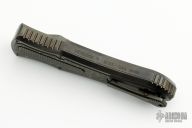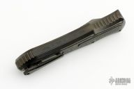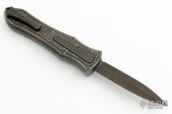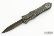 This knife is a Deadlock Model C by Grant and Gavin Hawk. It has a double-edged black blade. The handle has a Fat Carbon inlays in the black titanium frame with a tip down spring clip, titanium. The thumb slide on the handle is also titanium and handle has a titanium overlay. Comes with a cloth pouch. Grant and Gavin Hawk set out to create a double action OTF with no blade play.... They did it, NO blade play. Comes with tool, cloth pouch. New condition.