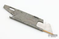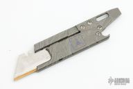 This TAD Gear/Rexford RUT (Rexford Utility Tool) uses a standard utility razor blade. Blade can easily be replaced. This piece features a functional lanyard hole, flat head screwdriver/pry tip, and bottle opener. The Triple Aught Design logo and topo graphic is laser etched into the titanium giving this piece a very unique look. Has a few light scuffs, otherwise excellent condition.