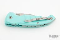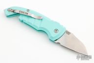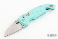 This A01 Microswitch model sports an aquarium blue anodized aluminum handle and a 1.8" stonewashed wharncliffe blade.