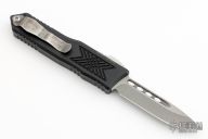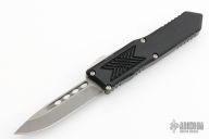 This GTX OTF by Guardian Tactical features a stonewashed drop point blade with fuller. The handle features a milled and chamfered aluminum body and black push button with tip down black stainless clip. Comes with a zippered case. Clip has scratches, otherwise good condition.