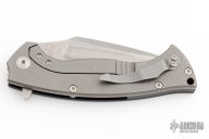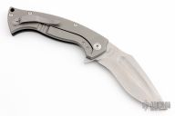 This MK Ultra Kukri Folder by Fox Knives is a collaboration with Doug Marcaida and Jason Knight, it has a stonewashed recurve blade with fullers, false top edge and a flipper. The handle has a black G-10 and stonewashed titanium frame with a tip up stonewashed stainless steel clip and black G-10 backspacer. Nice detent, lockup and blade seating. Comes with original box and papers. Excellent condition.