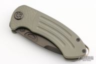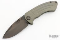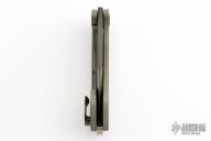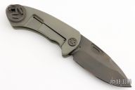 Theseus was an ancient Greek hero that killed the Minotaur in ancient Greek mythology. When I designed this knife, it had a primordial feel and seemed so minimal and sexy in its simplicity. The blade is a classic drop-point style that is light, with its false edge, yet would leave a vicious wound channel. This knife really is the result of my evolving philosophy about blade and handle thicknesses and materials. This one has a PVD blade with notched flipper. The handle has a milled tumbled and anodized titanium frame with a D2 backspacer with lanyard hole and a tip up titanium clip. Comes with original box. Excellent condition.