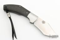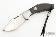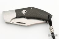 This Superbad Collab by Tashi Bharucha and Franck Souville features a hand rub satin finished blade with nail nick. The handle has satin finished stainless steel dovetailed bolsters, lightning strike carbon fiber covers, stainless steel escutcheon, liners and spring. Nice strong spring, nice blade seating. Excellent condition.
