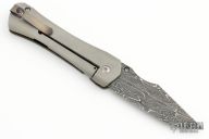 This Bone by Maverick Customs features a Calcinore Mosaic Damascus blade with a mokuti thumb stud.  The handle has a Richlite and a titanium frame with an anodized tip up titanium clip.  Includes a padded zippered case and COA.  New from maker!