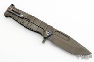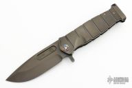 We believe we’ve come up with the best folding companion to the classic Marine Utility knife on the planet.  The knife is a perfect companion piece to the fixed “Fighter” and we call it the, “The Fighter Flipper.”.  This a big manly knife that’s as comfortable working, as it is cruising around town in your pocket.  There is so much going on with this knife its hard to take in: from the retro milling on the handles, drop-point blade, integral pommel to the bearing pressed into the one-of-a-kind pocket clip.  There truly is NOTHING like the Fighter Flipper™ in the knife world.  You will want to chop, stab and smash something with this beast in your hand so proceed with caution… Comes with original box and hard case.  Excellent Condition.