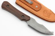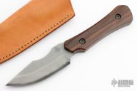 This Bone by Maverick Customs features a Takefu white paper core San Mai Damascus blade with a full tang construction.  .128" Blade Stock.  1.136" Blade Depth.  The handle has vintage micarta scales. Includes a brown leather sheath and COA.  New from Maker!