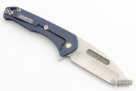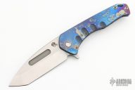This Praetoarin Slim by Medford Knife and Tool features a stonewash finish blade with a notched flipper tab.  The handle features a flamed and anodized titanium frame with a matching tip up pocket clip.  Includes the original box and papers.  Excellent Condition.
