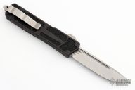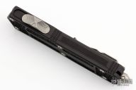 This Scarab II OTF by Microtech features a stonewashed M390 blade S/E, Black aluminum handle with a single glass breaker. Comes with original box. Dated 01/2021 Serial number 975. Excellent condition.