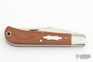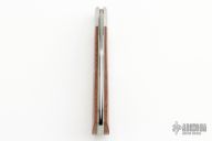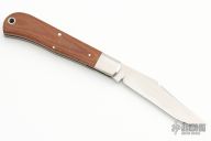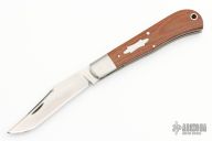 This Back Pocket Slipjoint by Dwayne Chancellor features a hand rub satin finished blade with nail nick. The handle has stainless steel bolsters and liners, A2 steel spring and natural canvas micarta covers with a stainless steel escutcheon. Has half-stop, flush in all positions. Excellent condition. Comes with a zippered case.