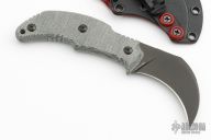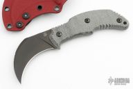 This Primal by Bastinelli Knives features a black hawkbill blade with a mortis tang construction. .136" Blade Stock. 1.145" Blade Depth. The handle has black micarta scales. Includes a kydex sheath. New from Maker!