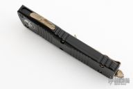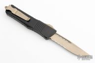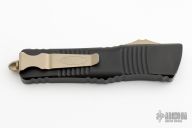 This Combat Troodon OTF automatic features a stonewashed bronzed S/E blade with a partially serrated edge. Stainless steel clip, tip down carry. Glass breaker, bronzed hardware. Serial number 36917 and dated 01/2022. Comes with original box and papers. New condition.