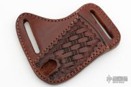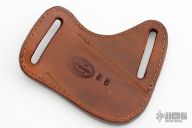 This cross draw sheath by A&M Leather is handcrafted from top quality leather, hand tooled. Has hole in the bottom of the sheath to push the knife out easier. Made primarily for slipjoints. Very well-made. New from maker.