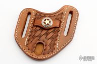 Leather Belt Sheath set up for a forward canted carry by A&M Leather. Silver and gold concho. New from maker.