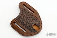 This cross draw sheath by A&M Leather is handcrafted from top quality leather, hand tooled. Made primarily for slipjoints. Very well-made. New from maker.