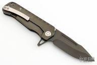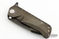 This Proxima by Medford Knife and Tool featured a pvd drop point blade with fullers and a notched flipper tab. The handle is composed of black PVD coated titanium and a satin tip up pocket clip and a lanyard hole. Includes a Medford box, hard case and papers. Excellent condition.