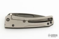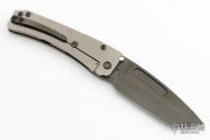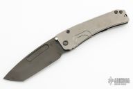 This Slim Midi Marauder from Medford Knife and Tool features a black PVD drop point tanto blade with thumb stud and fullers. The handle is comprised of a tumbled titanium frame with black PVD tip up clip. Excellent detent, lockup, and seating. Original hard case, papers and box. Excellent condition