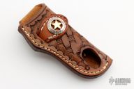 Hand tooled Leather Belt Sheath from A&M Leather. Features a gold and silver concho. New from maker.