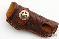 Hand tooled Leather Belt Sheath from A&M Leather. Features a gold and silver concho. New from maker.